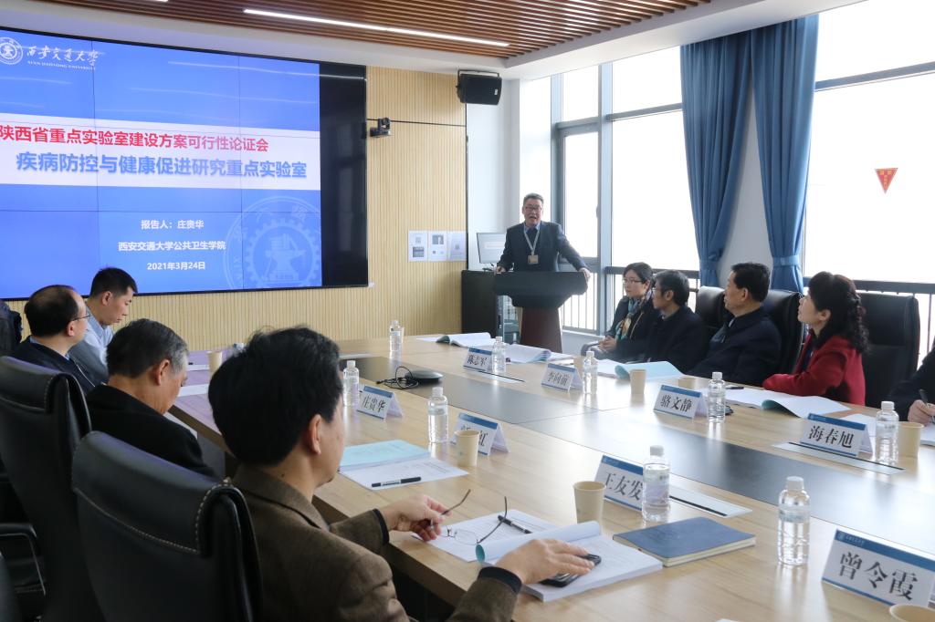 3月24日上午,公共卫生学院在创新港3043会议室召开了陕西省疾病防控与健康促进研究重点实验室建设方案可行性论证会。专家组由空军军医大学骆文静教授、空军军医大学海春旭教授、西安市胸科医院院长李向前主任医师、陕西省疾病预防控制中心副主任张少白主任医师、西安市疾病预防控制中心副主任陈志军主任医师组成,骆文静教授任专家组组长。西安交通大学副校长、医学部主任颜虹教授、陕西省科技厅基础研究处苗长贵副处长、西安交通大学科研院种道彤副处长、公共卫生学院院长庄贵华教授、全球健康研究院院长王友发教授、公共卫生学院副院长张峰教授、马乐教授及重点实验室骨干成员参加会议,会议由张峰副院长主持。