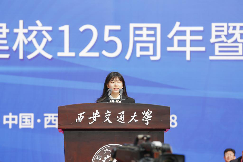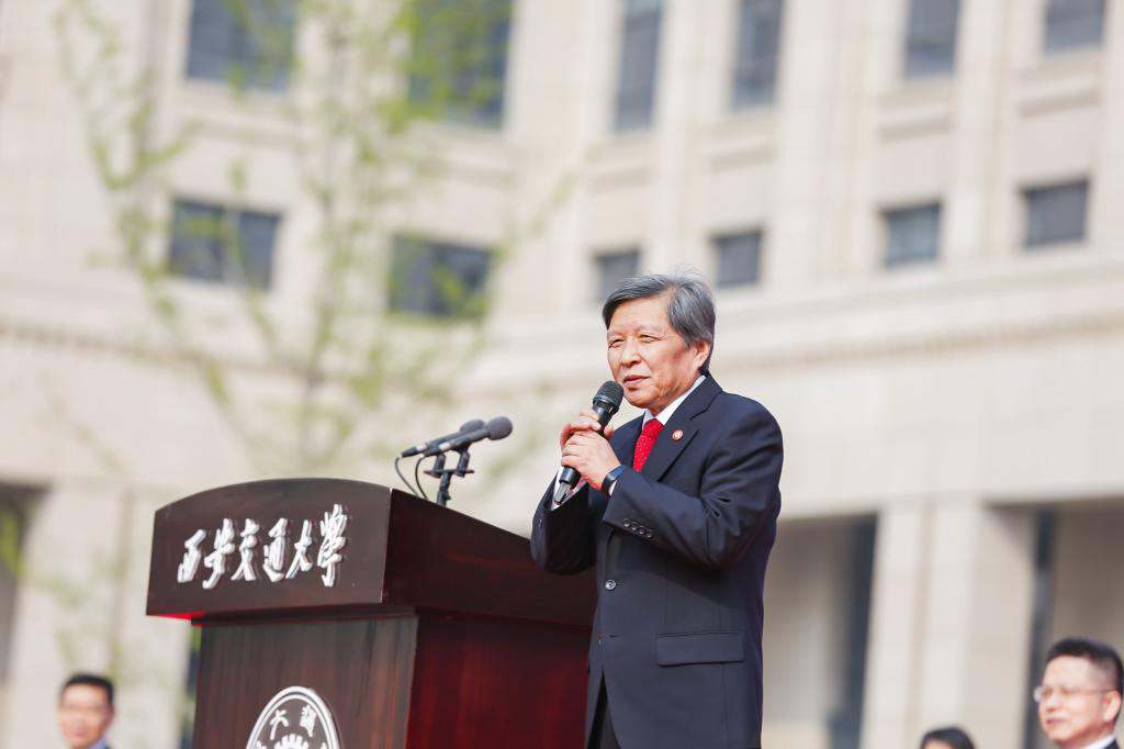 蒋庄德院士代表教师发言。他分享了西迁教授言传身教、润物无声展现出西迁精神的往事,并表示学校如今的发展成就离不开一代代交大人的奋斗,作为老师,将继续秉持初心跟党走,承上启下,为国家培养更多优秀人才,在坚持“四个面向”的战略方向上开启建设世界科技强国新征程。
