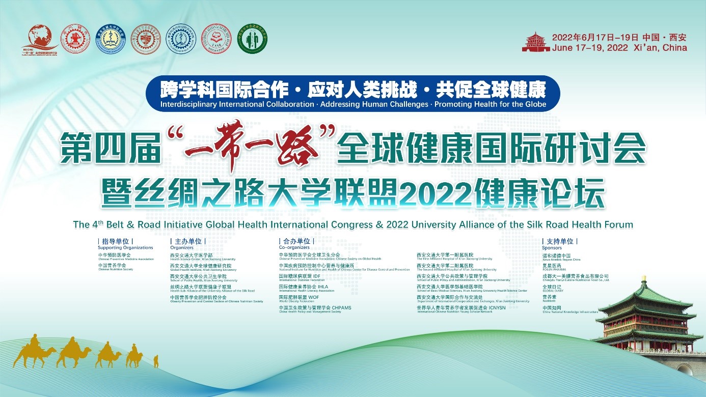 2022年6月17-19日,“第四届‘一带一路’全球健康国际研讨会暨丝绸之路大学联盟2022健康论坛”成功举行,大会主题是“跨学科国际合作·应对人类挑战·共促全球健康”(Interdisciplinary International Collaboration ? Addressing Human Challenges ? Promoting Health for the Globe)。为期三天的大会包括24个论坛,来自国内外160多位特邀资深专家和领导者分享了精彩报告,约11万人次通过会议直播平台线上观看了会议。