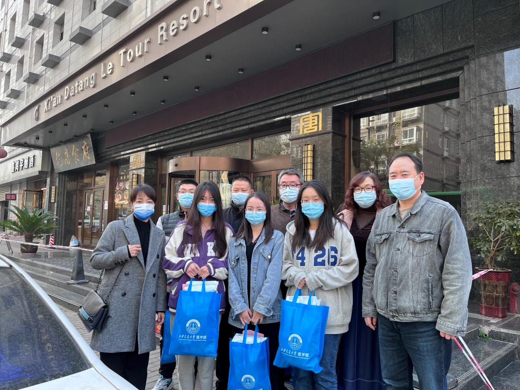 11月25日,西安市疾病预防控制中心主任陈保忠,西安交通大学医学部人才培养处副处长吴小健,公共卫生学院书记兼院长庄贵华、副书记岳甜、办公室主任李照青等疾控、学部和学院领导及工作人员赴隔离酒店慰问辛苦工作的研究生。